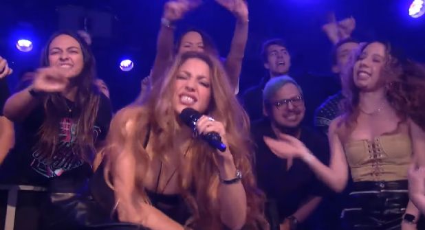 El show en el programa tuvo a una Shakira encendidísima que cantó con el público y después se dio tiempo de compartir micrófono con el joven productor.