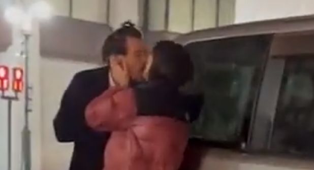 Sin temor a ser vistos por el público y sin importar que fueran grabados por los paparazzi, se muestra a la pareja besarse apasionadamente.