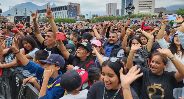 Monterrey.- ¡El 'Macrofest' ya comenzó!, cientos de regiomontanos acudieron la tarde de este domingo 16 de abril en las inmediaciones de Explanada de los Héroes, para ver y escuchar cantar a sus artistas preferidos en Monterrey.