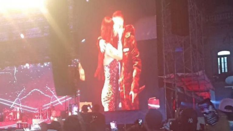 Durante su presentación, Santa Fe Klan subió al escenario a Karely, le dedicó su tema titulado "Mar y Tierra" y al terminar la canción, el cantante le dio un beso en la boca a la modelo.