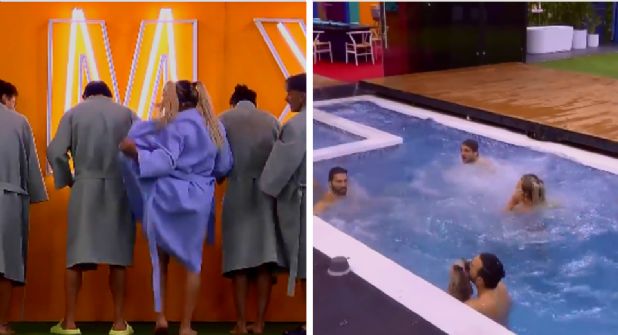 Ciudad de México.- Los integrantes del Team Infierno, de la Casa de los Famosos, cumplieron su promesa y se lanzaron sin ropa, a la alberca.