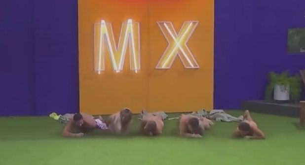 Por lo tanto, Poncho, Wendy, Sergio, Nicola y Emilio se quitaron sus prendas para quedar completamente desnudos y se postraron en el suelo.