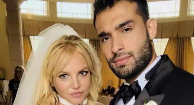Spears y Asghari se conocieron en la grabación del videoclip de "Slumber Party" en 2016, donde él figuraba como actor, y posteriormente anunciaron su compromiso en 2021 y se casaron en junio de 2022.