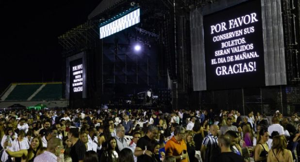 Luego de un par de horas, la producción avisó de la cancelación del concierto a través de megafonía y de las pantallas grandes, en donde reveló que el evento no se llevaría a cabo porque estaban presentando fallas técnicas.