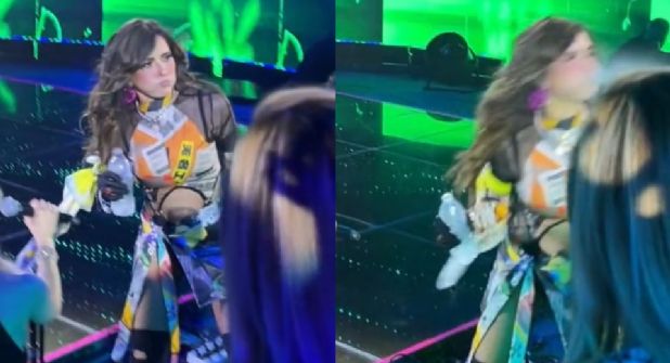 En la plataforma de TikTok se viralizó un vídeo del momento exacto en el que la artista le escupió agua a uno de sus fanáticos cuando se encontraba deleitando a su público con su famoso éxito 'Dr. Psiquiatra'.