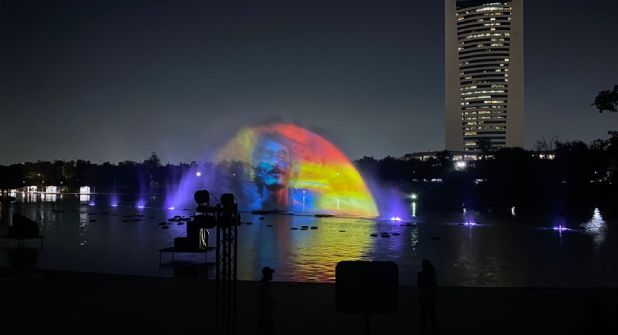 Decenas de familias se reunieron en el lugar, emocionadas y dispuestas a disfrutar de una asombrosa representación visual de la compañía Laser Quantum, la cual utiliza una impresionante combinación de luces, rayos láser, música y agua para narrar la historia de "Pedro" en su travesía a través de los nueve niveles del Mictlán, el mítico inframundo de la cultura azteca.