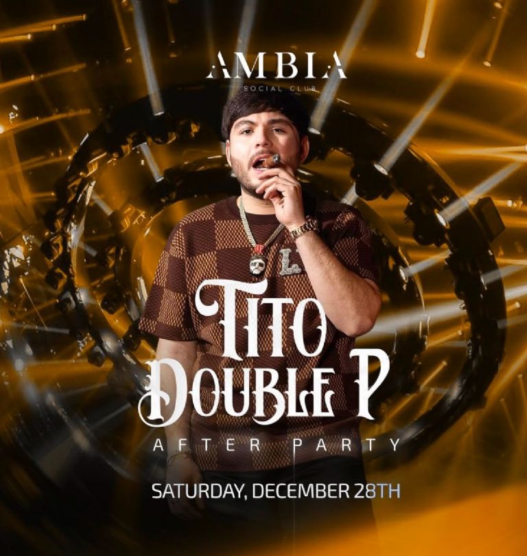Ambia Social Club es el lugar donde los fanáticos esperan encontrarse con Tito Double P, aunque no se ha confirmado si su llegada será antes o después de su show en el Domo Care.