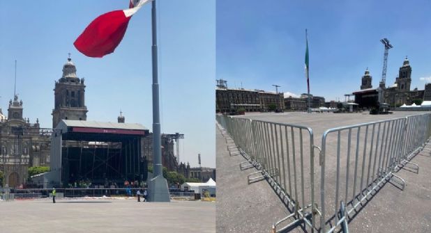 El escenario para su espectáculo ya fue montado, se llevaron a cabo las obras de peatonalización del primer cuadro de la ciudad, para despejar la zona y que el público pueda acceder libremente desde la tarde del sábado.