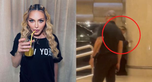 Una vez afuera de la camioneta, Madonna camina hacia la puerta principal del hotel, sin embargo, en su trayecto opta por detenerse y entonces, hace algo que llamó la atención de miles de usuarios en redes sociales.