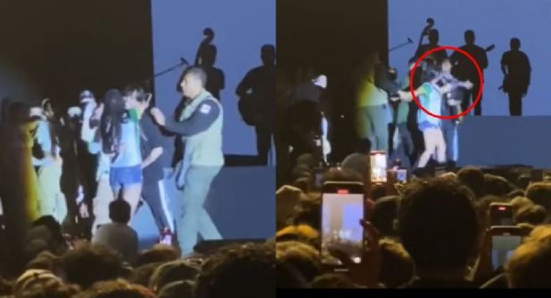 En la plataforma de TikTok se viralizaron varios videos del momento exacto en el que la fanática se sube corriendo al escenario y lo abraza del cuello, para tomarse una foto con él.
