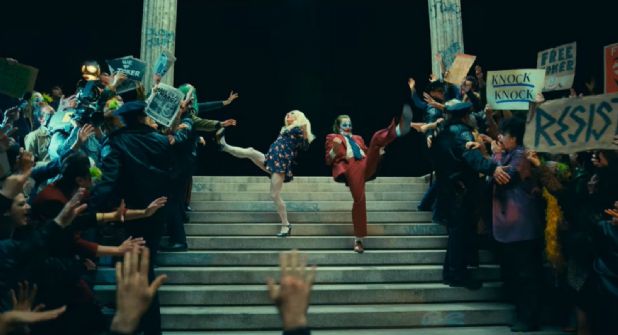 En algunas de las imagenes es posible observar a Joaquin Phoenix y a Lady Gaga bailar y en ciertos momentos cantar, pues como se recordará esta película tendrá un tinte musical.