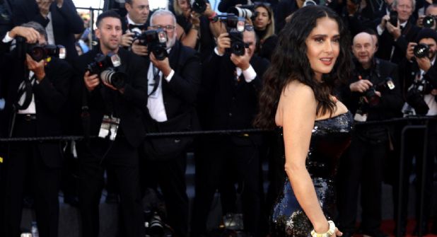 Cannes, Francia.- Salma Hayek no tuvo reparos para dejar asomar sus canas al acudir con el pelo suelto y partida en medio al Festival Internacional de Cine de Cannes.