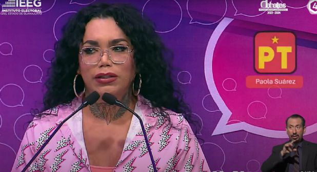 “Soy Cristian Ulises conocida como Paolita Suárez, soy candidata del Distrito 7 por el Partido del Trabajo y pues nada, estoy aquí, es una experiencia muy nueva para mí, pero pues no hay objetivo para mí”, dijo Paola durante su presentación en el debate.