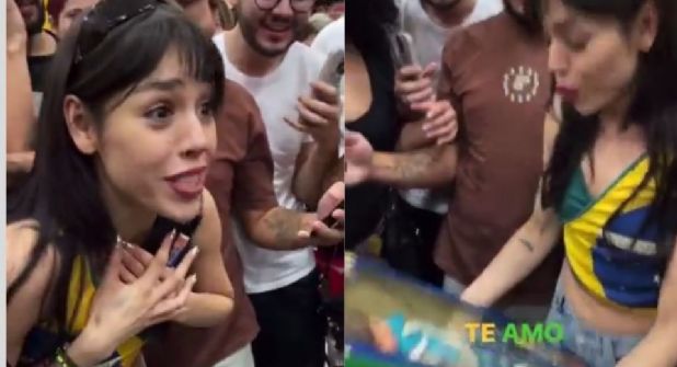 Brasil.- Danna fue sorprendida por una fan brasileña, quien le regaló una muñeca de María Belén, uno de los personajes más importantes que protagonizó la cantante a temprana edad, cuando iniciaba su carrera en telenovelas.