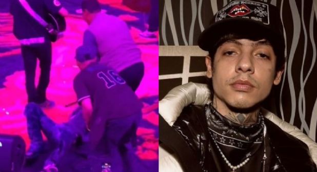 De inmediato, personal del staff del evento le ayudó al intérprete de los temas 'O me voy o te vas' y 'Ch y la pizza' a levantarse del suelo.