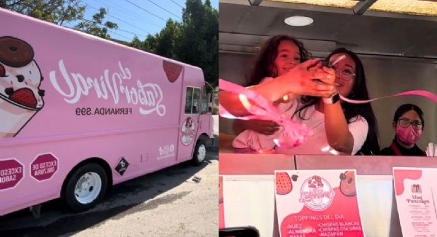 La revendedora publicó algunos videos de la inauguración de su "primer camión de fresas con crema", en la grabación se observa su nuevo espacio, una grande unidad de color rosa, caracterizada con el logo de su marca, su nombre, algunas de sus frases y sus redes sociales.
