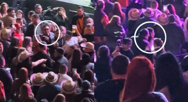 En el clip aparece Brincos Dieras apuntando a las agresoras de su mujer, para que los elementos de seguridad las ubicaran para sacarlas escotadas del lugar y no huyeran entre la multitud.