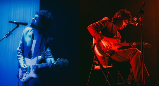 Sobre el escenario, el cantante originario de Chihuahua se acompañó únicamente de sus guitarras y un discreto juego de luces en tonos rojos y blancos, creando un ambiente cálido, melancólico y lleno de conexión con su público.