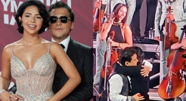 En las imágenes se aprecia el instante en que Ángela Aguilar sube al escenario para besar a Nodal y saludar al público, mientras la violinista realiza expresiones faciales que usuarios calificaron como incómodas o de desaprobación.