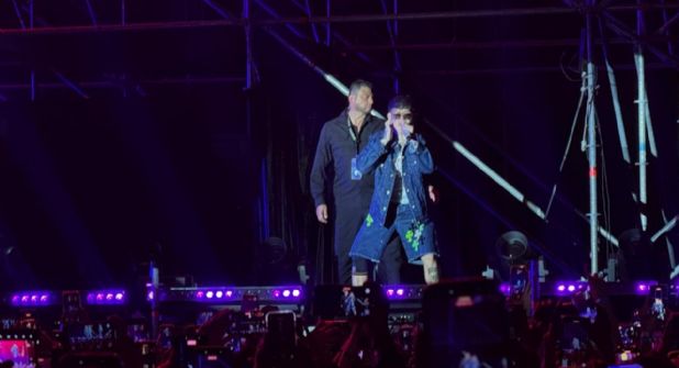 Uno de los momentos más celebrados de la noche fue la participación especial de Payo, vocalista de Grupo Frontera, quien subió al escenario acompañado de un mariachi para interpretar junto a Junior H su colaboración “Altavoz”, provocando una ovación generalizada entre los asistentes.