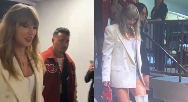 A su arribo, Taylor se mostró sonriente y amigable con los medios de comunicación, posteriormente, se dirigió al palco donde disfrutó del partido entre Kansas City Chiefs, equipo en donde juego su novio y Philadelphia Eagles.
