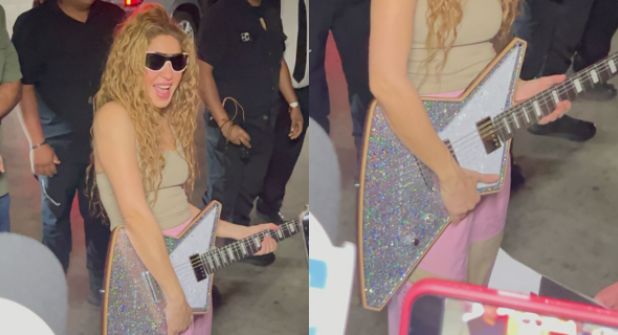La cantante colombiana, quien se encuentra en su gira "Las Mujeres Ya No Lloran Tour", no solo saludó a sus seguidores con una gran sonrisa, sino que también recibió un regalo especial: una guitarra valuada en más de 7 mil dólares, obsequio de un fanático que confesó haber adquirido el instrumento como muestra de admiración.