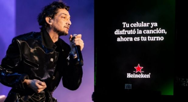 La petición se replicó en las pantallas del escenario, reforzando el mensaje de conectarse con la música de una forma más auténtica.