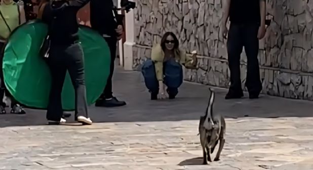 Lejos de ignorarlos, la cantante decidió integrarlos en su filmación, interactuando con ellos de manera natural y cariñosa.