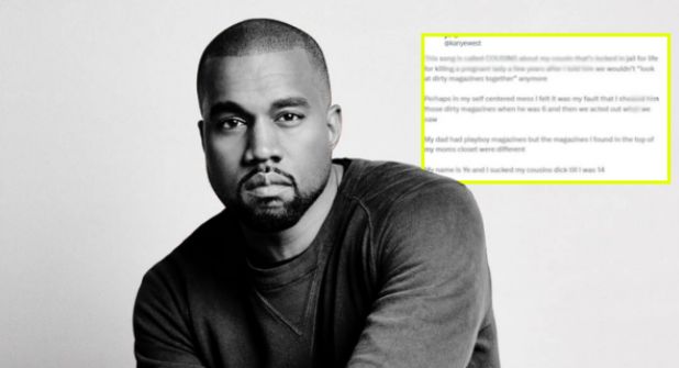 En esta publicación Kanye explica que mantuvo una relación sexual con su primo durante 7 años, pues al encontrar revistas porn*gráfica con contenido homosexual en el closet de su madre se las mostró a su familiar.