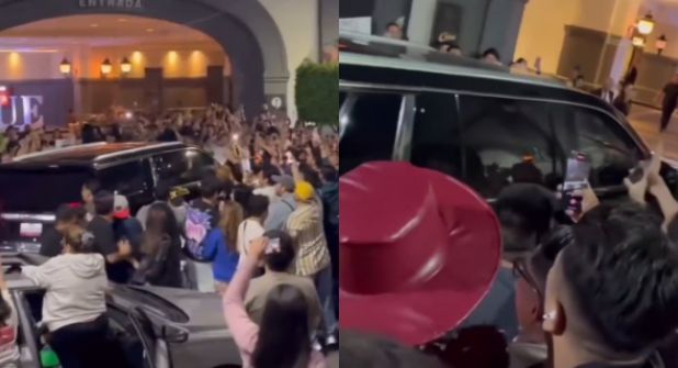 Sin importarles la seguridad y que la camioneta que transportaba a Lady Gaga estuviera en movimiento, los fans se aventaron contra la camioneta a fin de verla un poco más cerca.