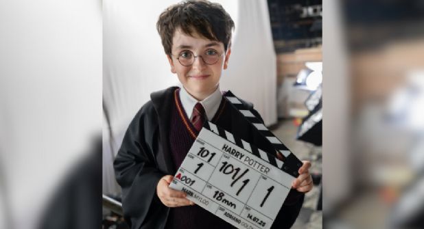 El joven actor Dominic McLaughlin fue presentado caracterizado como el famoso mago; con la clásica camisa blanca, su icónico suéter, la inconfundible cicatriz en forma de rayo y los emblemáticos lentes redondos.