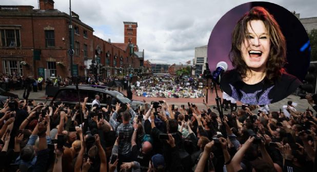 Al llegar al banco de Black Sabbath, el cortejo se detuvo y los familiares y amigos de Ozzy, entre los que se encontraba visiblemente emocionada su viuda, Sharon Osbourne, y sus hijos, Jack, Kelly y Aimee, depositaron flores y recibieron la ovación de los allí congregados, a la que respondieron esbozando el símbolo de la paz levantando sus manos.