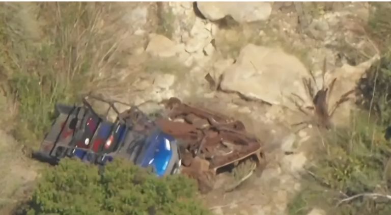 Tras el impacto, el vehículo ‘todo terreno’ fue empujado hacia el arcén y cayó alrededor de 107 metros por el barranco.