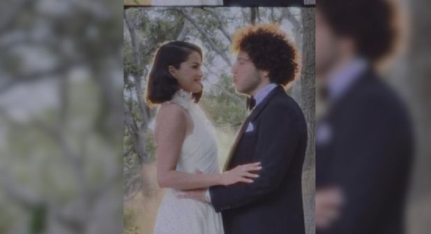 Selena, de 33 años, lució un vestido de corte clásico con delicados detalles en encaje, mientras que Benny optó por un traje moderno y sobrio.