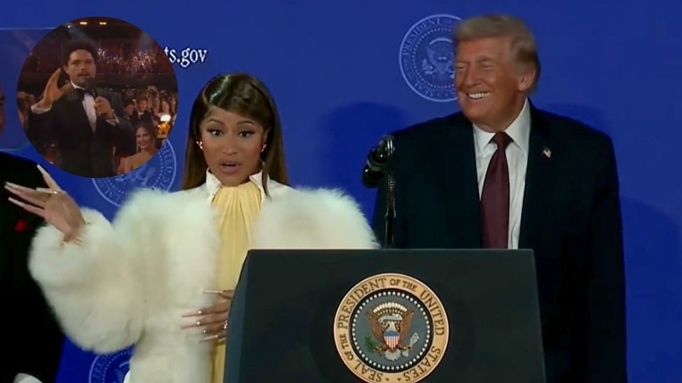 Los Ángeles.- El Presidente de Estados Unidos, Donald Trump y la cantante Nicki Minaj fueron objeto de burla esta noche en los Premios Grammy.