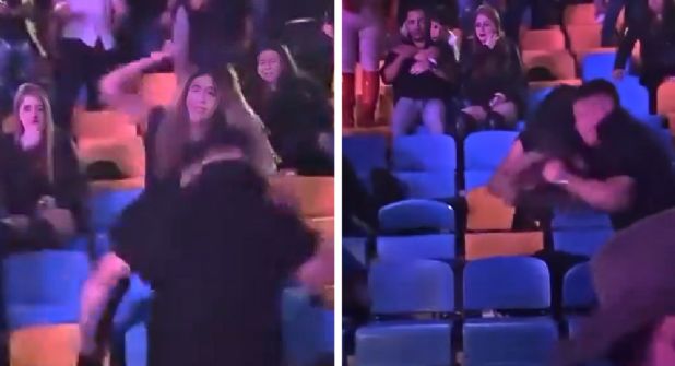 Videos difundidos en redes sociales muestran cómo un hombre inició una confrontación en medio del público. En las imágenes se observan empujones, golpes y momentos de tensión que alarmaron a quienes se encontraban cerca.