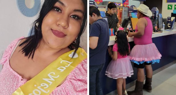 El hombre publicó en su cuenta de Facebook diversas fotografías en las que aparece junto a su hija; ambos llevaban prendas rosas en alusión a la película.