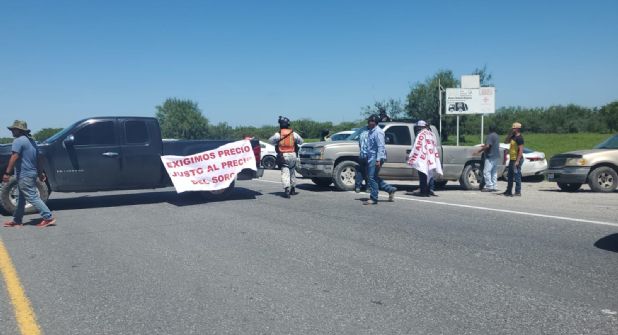 Tamaulipas.- Un grupo de productores de sorgo ha vuelto a protagonizar una protesta en la región, esta vez cerrando parcialmente la circulación en ambos sentidos de la Carretera Federal 40 Reynosa-Monterrey.