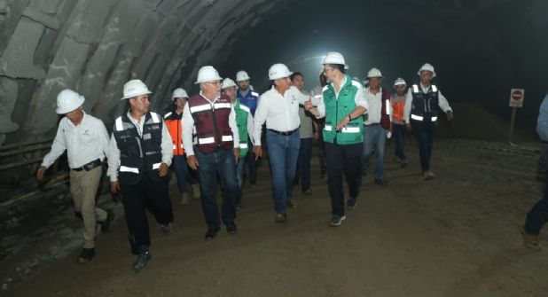 Villarreal Anaya recorrió el interior del túnel para presenciar el momento en que las máquinas excavadoras lograron la interconexión de los frentes de excavación, tras meses de trabajo.
