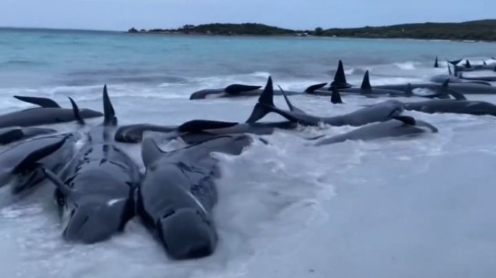 25/7/2023 | Un total de 97 ballenas piloto quedaron varadas en la remota playa Cheynes.