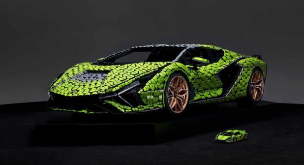 Una verdadera sorpresa fue la que presentó Lego, una de las empresas danesas más importantes en la fabricación y comercialización de juguetes, en específico, bloques de construcción, quienes realizaron una pieza a escala real del único Lamborghini híbrido, el Sián FKP 37.