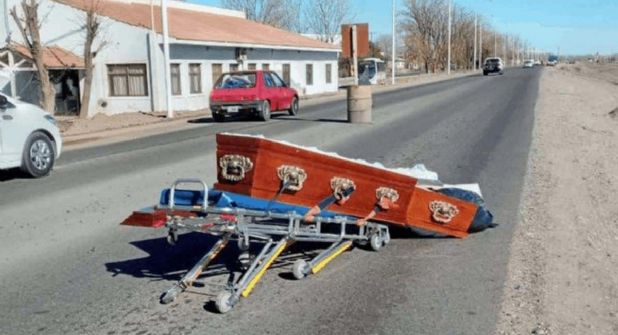 Argentina- La carroza fúnebre que transportaba a una joven fallecida desde la ciudad de Plottier hasta Picún Leufú perdió el cuerpo en medio de la ruta 22, en la localidad de Senillosa, en la provincia de Neuquén, provocando terror en los conductores que transitaban por la zona.