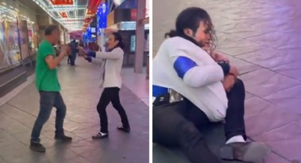 Las Vegas.- Santana Jackson, luchador e imitador de Michael Jackson, se ha vuelto viral en redes sociales tras haber sido captado golpeando a un sujeto en la calle Fremont, en la ciudad de Las Vegas, Nevada.
