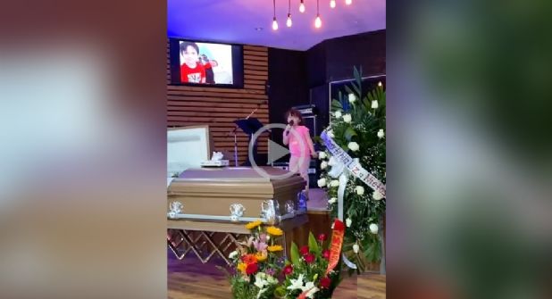 La menor subió a un escenario frente al ataúd de su abuelito y comenzó a cantar un tema original que ella compuso.