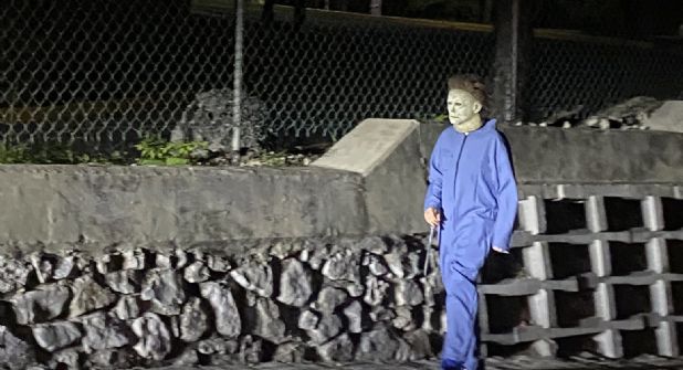 Cabe señalar que el hombre disfrazado de Michael Myers no solo iba con máscara y overol, sino también con un artefacto en su mano que figuraba ser un arma blanca.
