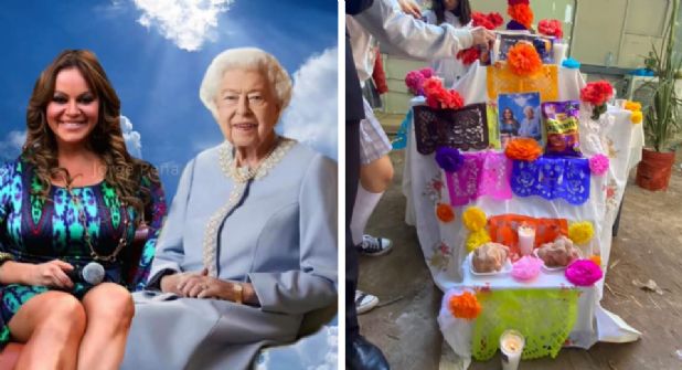 Monterrey.- Alumnos y maestros del Colegio de Bachilleres (Cobach) trabajaron juntos para rendir homenaje en el Día de Muertos a la cantante mexicana Jenni Rivera y a la monarca del Reino Unido, la Reina Isabel ll.