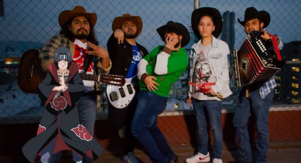 Estos músicos suelen salir al escenario con los sombreros que son clásicos en una agrupación regional, pero acompañan su vestuario con túnicas de Akatsuki y bandas ninja de las aldeas, ambos elementos de Naruto.