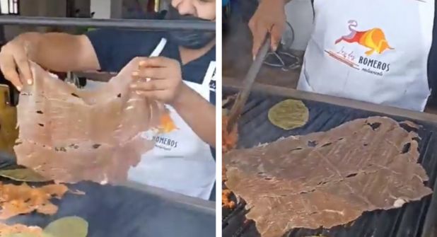Este clip muestra cómo un parrillero presume un corte de cecina -que es carne deshidratada de características similares al jamón- mismo que entra al asador para estar listo en pocos segundos, esto debido a su textura y grosor.