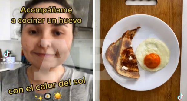 Una usuaria de Tik Tok publicó un video corto de su aventura intentando cocinar un huevo solo con el calor natural, en una temperatura de alrededor de 36 grados centígrados y un cielo señalado como mayormente nublado.