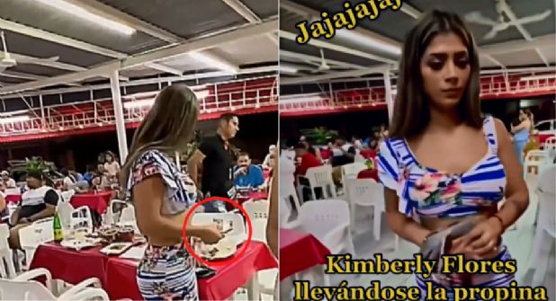 Monterrey.- Kimberly Flores fue criticada en las redes sociales luego que circulara un video en el que se le observa tomando la propina que su esposo había dejado en un restaurante.